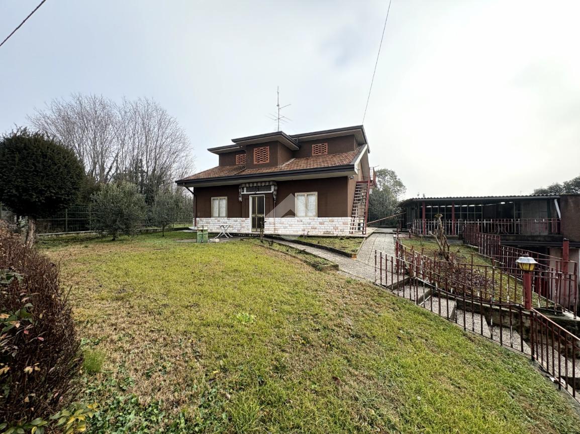 SU QUESTO IMMOBILE NON SARA' POSSIBILE PRESENTARE UNA PROPOSTA VINCOLATA ALL'OTTENIMENTO DEL MUTUO. A pochi passi dal centro del paese, ma in zona super tranquilla, proponiamo una villetta singola edificata intorno alla metà degli anni '60. Il tetto non presenta danni o infiltrazioni ma la struttura necessita di una profonda ristrutturazione. Nonostante gli impianti siano quelli originali dell'epoca di realizzazione della casa, sono tutti funzionanti e la vecchia caldaia a gasolio è stata recentemente sostituita con una più moderna alimentata a gas metano. L'abitazione al piano terra è composta da un ampio ingresso, soggiorno, sala da pranzo e cucinotto, due spaziose camere da letto ed un bagno. Al piano primo, accessibile solamente dalla scala esterna, ci sono due grandi stanze al rustico in cui ricavare un bilocale di circa 50mq. Accanto alla casa, un grande porticato con il garage sottostante di circa 40mq. Vista l'epoca di costruzione, l'edificio non rispetta le recenti normative antisismiche.
